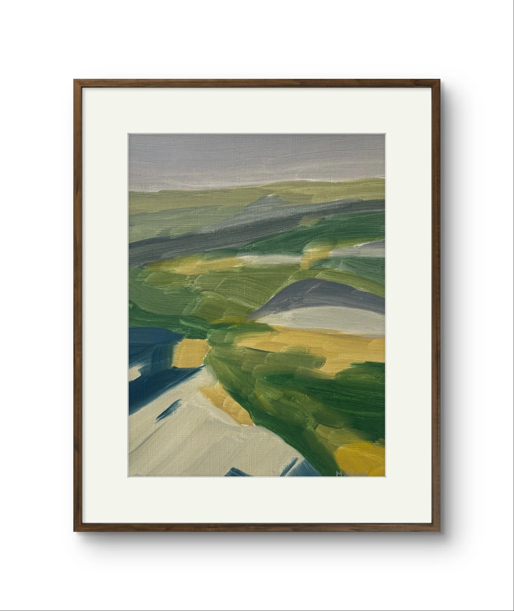31cm x 25cm beautifully mounted and framed in a dark brown metal frame. Ready to hang.