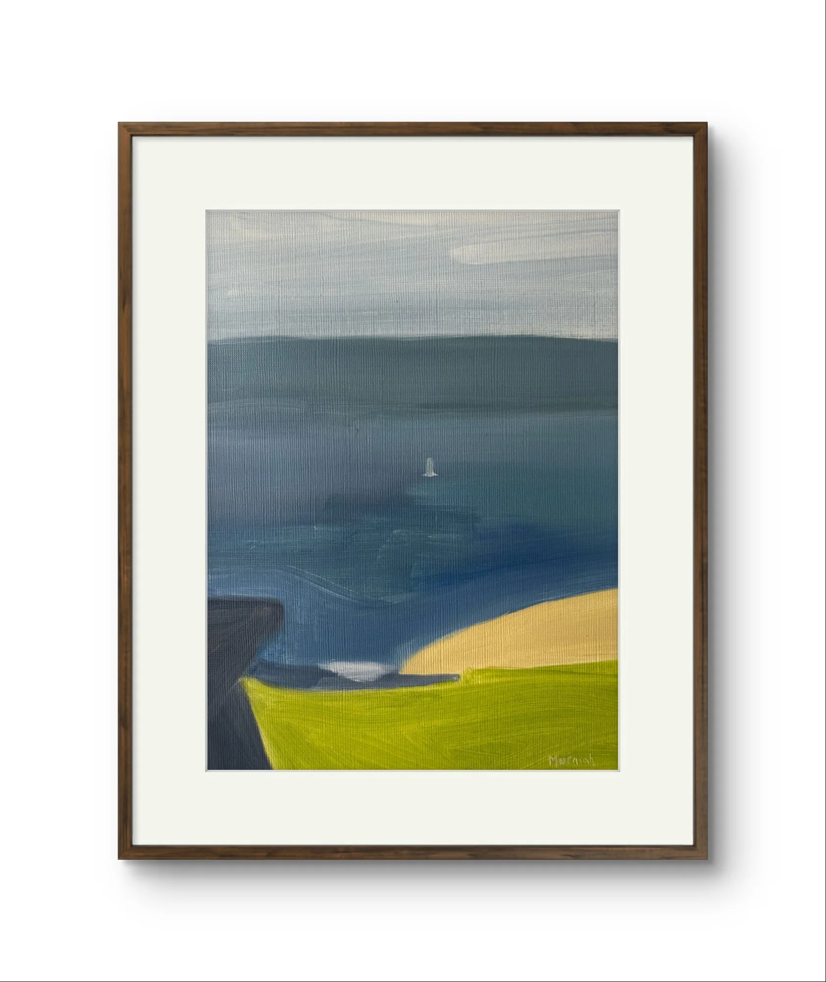 31cm x 25cm beautifully mounted and framed in a dark brown metal frame. Ready to hang.